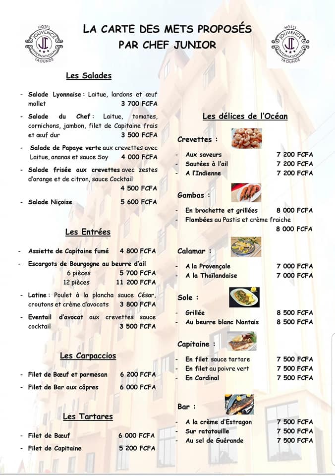 L’hôtel Jouvence International fort de 3 étoiles Luxe, constitue le navire amiral de la flotte de « La Société des Hôtels Jouvence » créée dans les années 1980 par son fondateur, Monsieur Alphonse Kouam qui préside toujours aux destinées de cette entreprise familiale. Jouvence International est un établissement ultra moderne, ouvert aux Clients depuis le mois de février 2019. Il est fort de 62 Chambres magnifiquement dotées, comprenant Single et Twin ainsi que de 5 Suites Présidentielles au confort particulièrement raffiné. Au rez-de-chaussée du bâtiment, la réception, conviviale et spacieuse vous accueille et vous permet de vous rafraichir grâce à la présence de l’un des bars de l’établissement. Le premier étage constitue l’espace de vie de l’hôtel avec son salon, son Bar intimiste, son Restaurant gastronomique, sa superbe salle de séminaires modulable et son futur espace aquatique très convivial. Les 67 Chambres et Suites sont réparties sur les 6 étages supérieurs.
