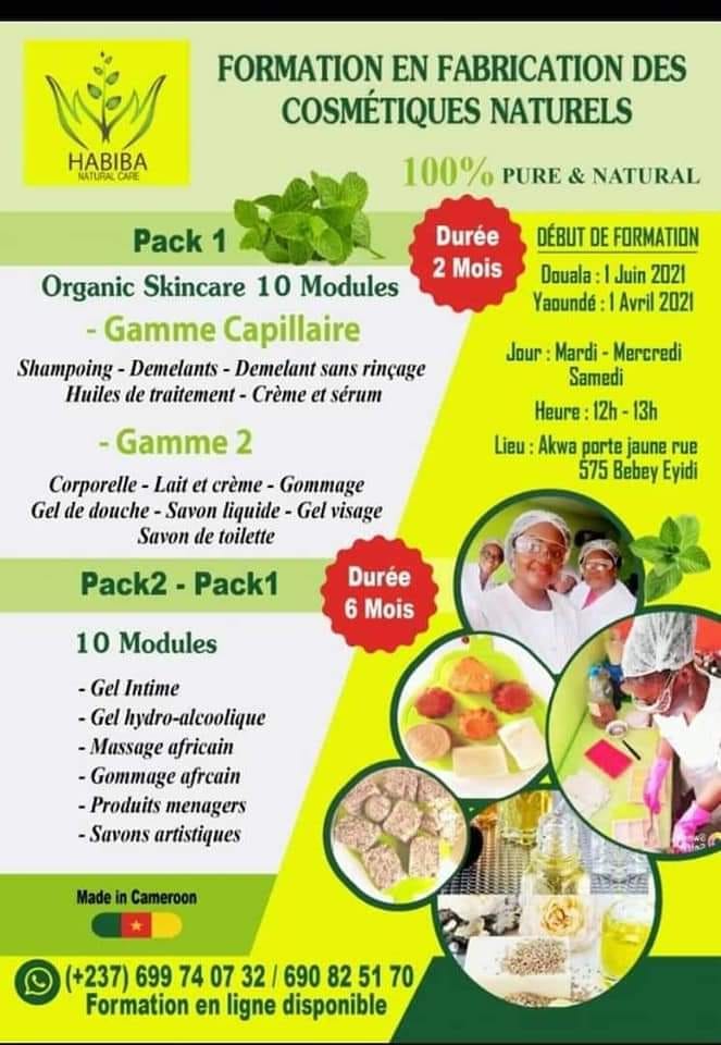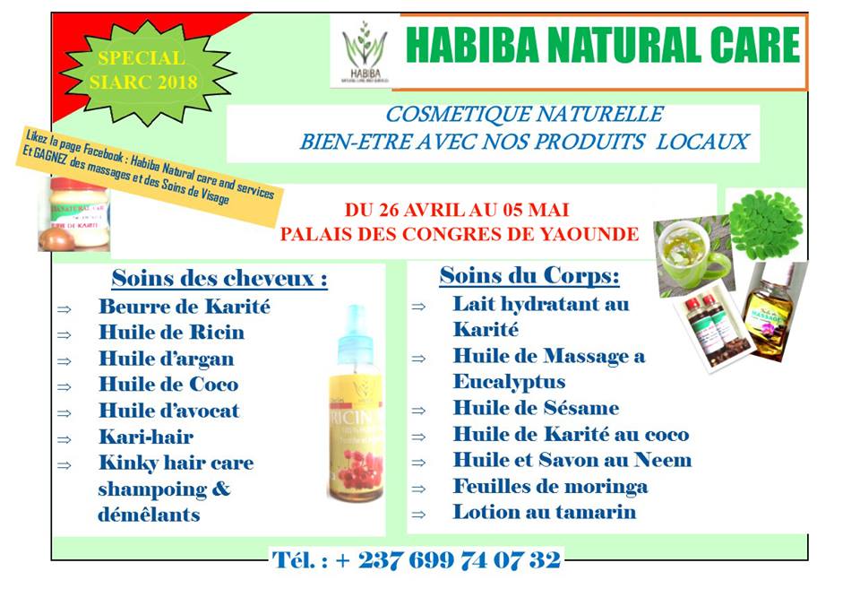 Habiba Natural Care and Services (HNC) est une entreprise camerounaise de fabrication et commercialisation de produits cosmétiques à base de d'ingrédients 100% naturels. Sublimez votre peau et vos cheveux grâce aux produits 100% naturels. Du beurre de karité a l'huile de coco en passant par l'huile de sésame votre peau aura un éclat particulier et vos cheveux deviendrons facile a coiffer. L'entreprise propose aussi des produits alimentaires bio tel que le Moringa. Habiba Natural Care and Services est basée à Douala.