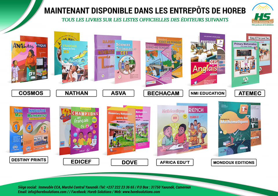 Horeb Solutions Sarl est une entreprise récemment créée pour combler les lacunes et les défaillances observées dans le secteur de la distribution au Cameroun notamment dans le domaine des manuels scolaires, des fournitures scolaires, des fournitures de bureaux… Conscient de cette nécessité de distribuer vos produits sur l’ensemble du territoire national, nous avons mis à votre disposition un réseau de distribution et de partenaires présents dans les dix régions. Horeb Solutions est doté de six grands entrepôts dans quatre régions, d’un parc automobile composé d’une dizaine de véhicules (camion, dynas, fourgonnettes), d’une équipe dynamique prête à vous servir, d’une plateforme technologique de pointe pour faciliter la distribution de vos produits sur toute l’étendue du territoire national.