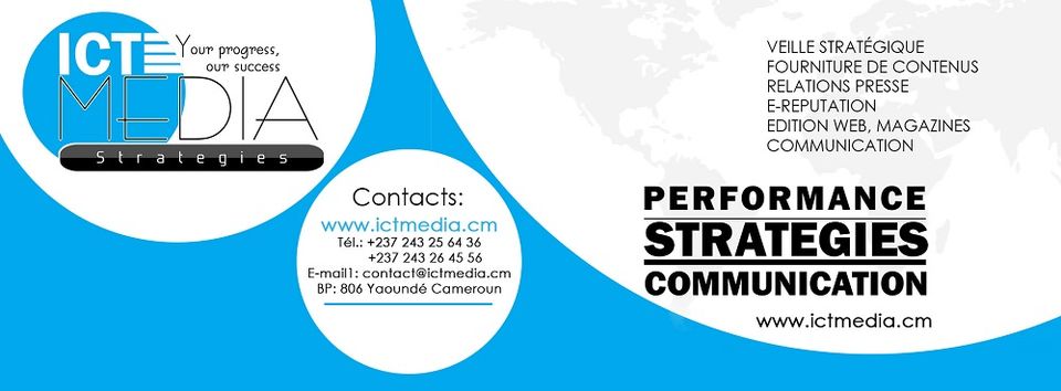 ICT Media STRATEGIES est un cabinet spécialisé dans la veille stratégique et la communication basé à Yaoundé au Cameroun. Ses actions s’articulent autour de six pôles d’activités : la fourniture des contenus médiatiques, la veille stratégique, l’édition ; les relations publiques, les relations presse et l’E-Réputation ; la création web et numérique et enfin les formations et études. Afin de démultiplier vos compétences et accroître votre productivité, nos équipes spécialisées et collaborateurs permanents, associés à des consultants externes ou des partenaires spécialisés tant locaux qu’étrangers, vous fournissent les meilleurs services, les meilleurs conseils en communication et les meilleures stratégies en communication afin d’avoir en permanence une longueur d’avance sur la concurrence. Nos différentes équipes s’adaptent à votre projet et grâce à sa force de proposition vous proposent des outils personnalisés répondant mieux aux objectifs que vous vous êtes fixés. Notre approche est ainsi centrée sur la participation active de nos clients dans l’élaboration de leurs différentes stratégies de communication. ICT Media STRATEGIES travaille en collaboration avec la régie publicitaire ICT Media Marketing And Communication Agency.