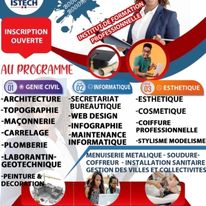 ISTECH est un institut de formation professionnelle aux technologies de génie civil, d'informatique et d'esthétique. ISTECH forme dans des filières qui vous garantissent un emploi stable et une insertion sociale. Bénéficiez des cours théoriques et pratiques ainsi que des stages en entreprise pour une formation complète.