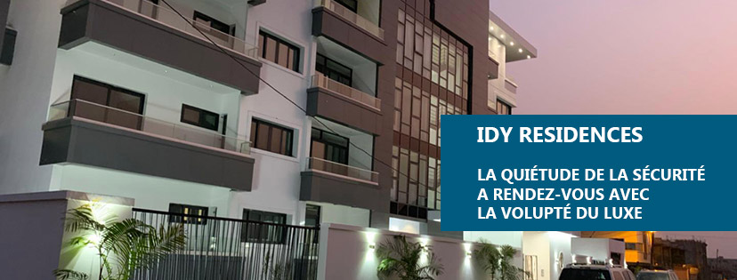 Idy Résidences est un complexe privé de 13 appartements, tout confort, allant du studio au T5. Idéalement situé dans le prolongement du quartier résidentiel de Bonapriso - ancien aéroport, proche du quartier administratif et du centre des affaires de la ville de Douala, Idy Résidences dispose des commodités qui vous assurent une vie de famille ou un séjour d'affaire paisible. Un parking sécurisé sous-sol de 23 véhicules, une piscine avec bar, un complexe sportif de tennis et basket-ball, une salle de gym, un groupe électrogène de grande capacité, un forage d'eau avec un réservoir de 12000 litres permanent, des interphones avec camera pour chaque appartement. Un ascenseur et des escaliers rendent tous les appartements facilement accessibles. Une compagnie de sécurité de réputation internationale assistée par une trentaine de cameras 360 degrés assure la sécurité 24h/24.