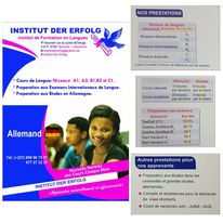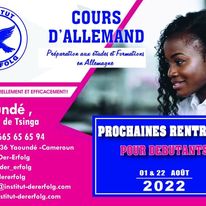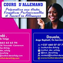 Créé en 2008, l’Institut Der Erfolg est un institut de langue reconnu dans l’enseignement de l’Allemand et de l’Anglais. Ses enseignements sont offerts à toute personne désirant apprendre lesdites langues à des fins académiques, personnelles ou professionnelles sans distinction d’âge ou de niveau intellectuel. Il dispose de deux sites : l’un à Yaoundé (rue du lycée de Tsinga) et l’autre à Douala (fin barrière Essec). Notre souci majeur est d’offrir aux apprenants un enseignement de qualité ainsi qu’un suivi, rapproché et permanent, assuré par notre personnel hautement qualifié et toujours prêt à vous servir. Nos cours respectent les normes internationales. Ils vous plongent au cœur du patrimoine culturel et des principales activités économiques en vue de faciliter votre intégration dans tous les pays d’expression allemande et anglaise.
