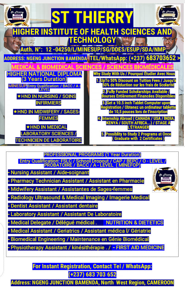 L’Institut Supérieur des Sciences et Technologies de la Santé St Thierry (SHIHSAT) est un établissement d’enseignement supérieur fonctionnant sous autorisation N° 369/MINEFOP/SG/DFOP/SDGSF/SACD/BAC du 16 novembre 2018 agrément 00000211/MINEFOP/SG/DFOP/SDGSF/SACD/BAC du 14 décembre 2020 par le Ministère de l'Emploi et de la Formation Professionnelle. SHIHSAT est également affilié à des instituts universitaires d'État tels que Havard University Institute Of Science and Technology de Bamenda (HUIST) et Kesmonds International University (KIU). SHIHSAT offre des formations professionnelles dans le domaine de la santé, l’agriculture, la comptabilité et les nouvelles technologies.