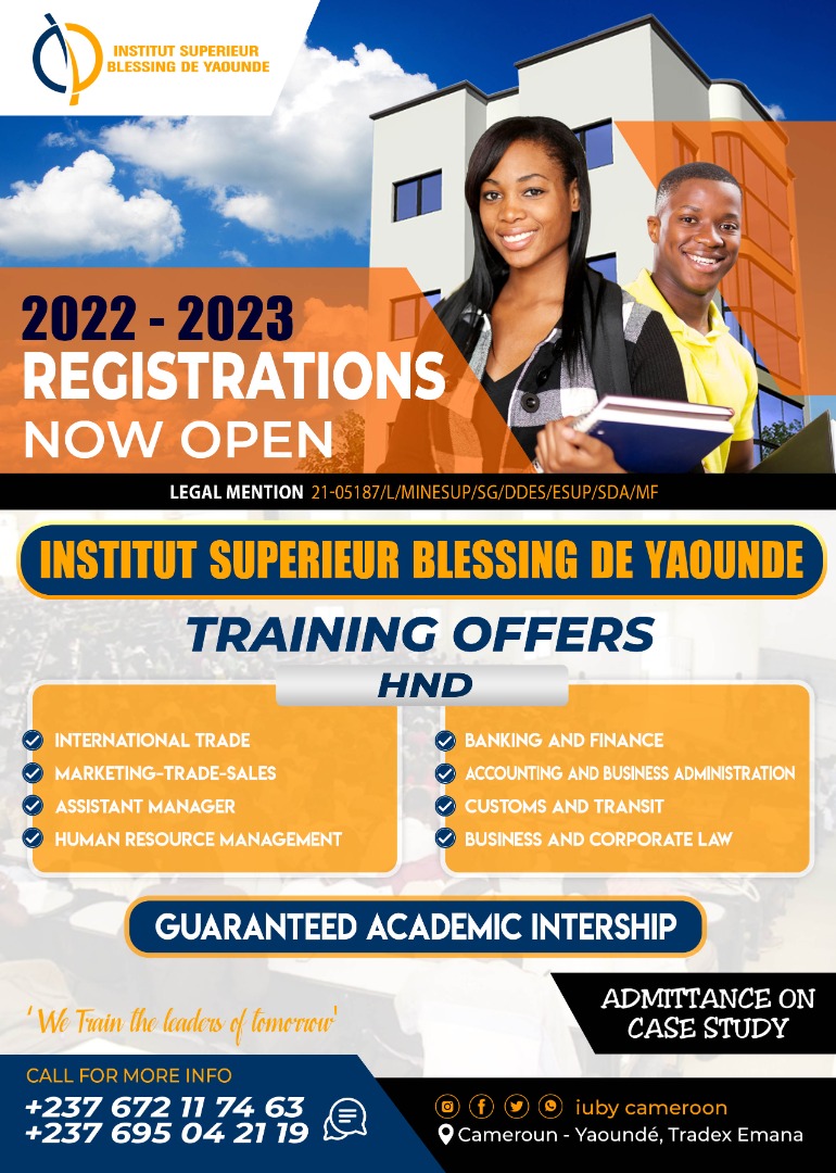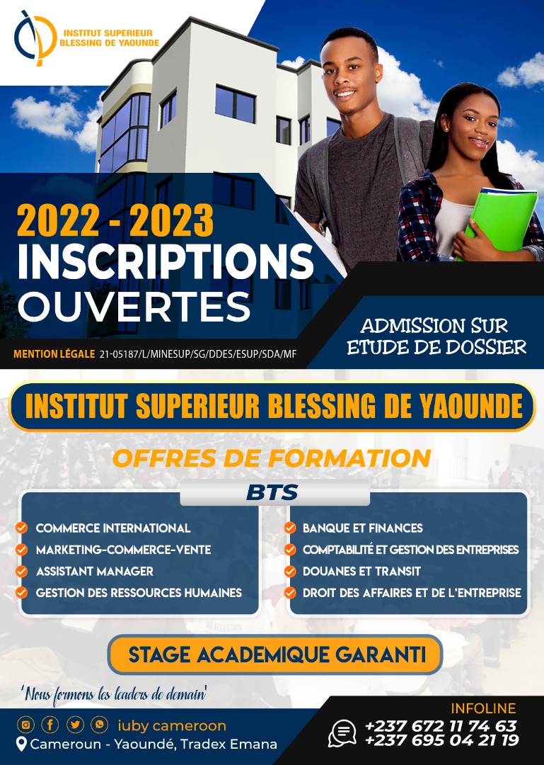 L'institut Supérieur Blessing de Yaoundé (ISBY) est une école de formation bilingue dans les domaines qui préparent l'étudiant a l'emploi direct tels que : commerce international, marketing-commerce-vente, assistant manager, gestion des ressources humaines, etc. ISBY est situé à Yaoundé au quartier Emana.