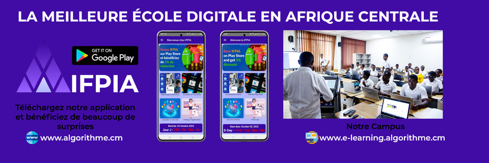 L’Institut de Formation professionnelle Internationale Algorithme (Algorithme – IFPIA) est à la fois une entreprise et un institut international de formation en informatique. Basée aux USA, avec une représentation en Afrique, dont le Cameroun est la direction Afrique. En tant qu'entreprise digitale innovante, nous offrons tous les services imaginables. De la publicité jusqu'au développement d'applications en passant par les supports de communication et les services de paiement en ligne. Nous créons des solutions grand public à fort impact à grande échelle pour tous. Nous utilisons les dernières technologies et pratiques grâce à une veille technologique constante.