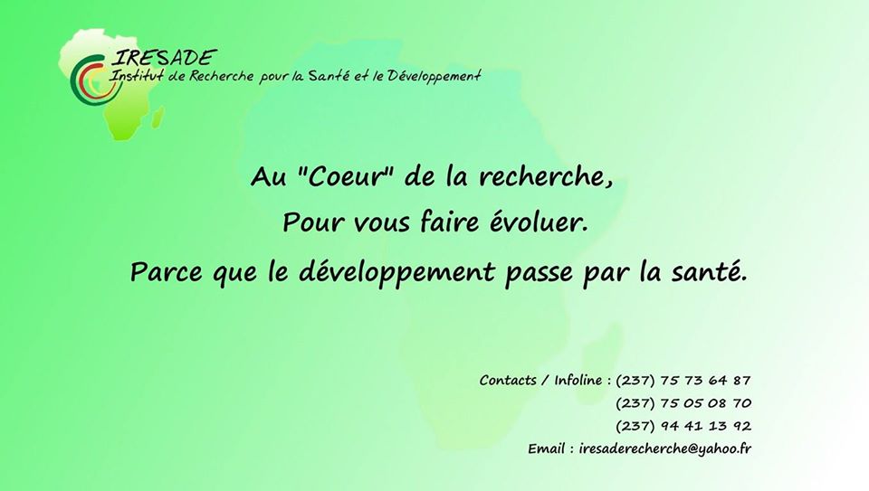L’Institut de Recherche pour la Santé et Développement (IRESADE) est un organisme de recherche interdisciplinaire à but non lucratif et apolitique. Il regroupe en son sein des chercheurs de plusieurs disciplines (Sciences économiques, sciences juridiques et politiques, mathématiques, sociologie …). Sa dénomination vient du fait que les différentes recherches qui y sont menées valorisent la santé comme un élément incontournable dans la réalisation des objectifs de développement.
