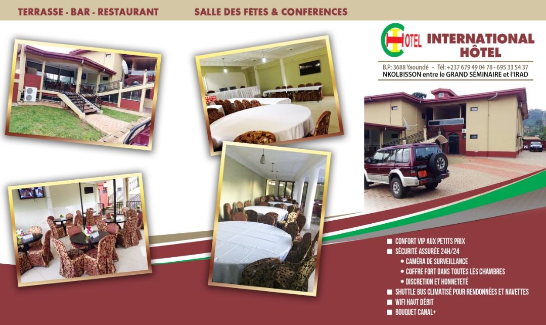 International Hôtel est situé à Yaoundé au quartier Nkolbisson. Il propose un restaurant, un parking privé gratuit, un bar et un salon commun. Cet hôtel 3 étoiles propose une réception ouverte 24h/24 et un service d'étage. Vous pourrez prendre un verre au snack-bar.