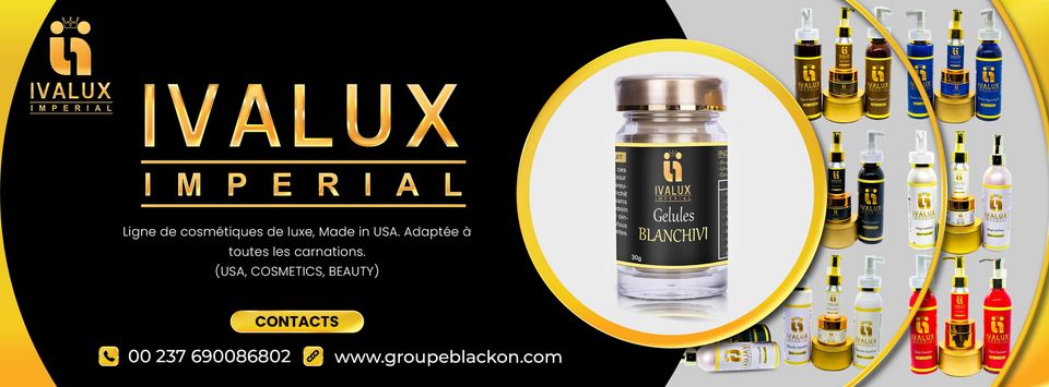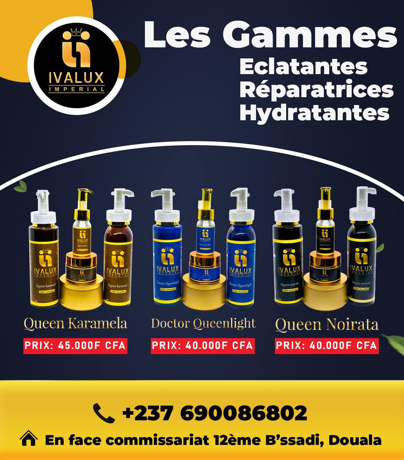Ivalux Imperial est une marque de produits cosmétiques destinée à toutes les personnes désireuses d’avoir un teint propre, uniforme et sans tâche. Ivalux Imperial est une ligne de cosmétique de luxe made in USA adaptée à toutes les carnations avec une panoplie de gamme notamment : la gamme blanche injection, la gamme maya métisse, la gamme claire banane, la gamme queen karamela, la gamme queen noirata et la gamme doctor queenlight. Nous sommes basés à Douala, Yaoundé et Foumban.