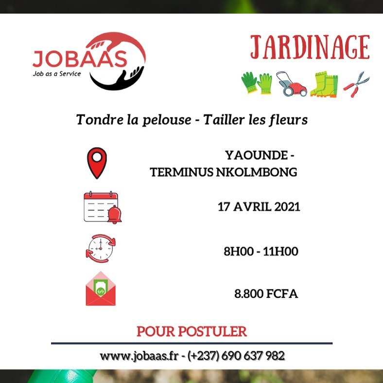 Job as a Service (Jobaas) est une jeune entreprise désireuse de booster le marché de l’emploi ponctuel au Cameroun. Nous souhaitons rapprocher les milliers de jeunes camerounais des opportunités d’emploi qui correspondent à leurs compétences. Durant les vacances bien des jeunes se plongent dans l’oisiveté parce qu’ils ne savent pas quoi faire d’autre. Pourtant il existe une multitude de façons pour eux de se rendre utiles contre rémunération. Mais où trouver ces opportunités ? Après avoir mené des études sur le marché, nous avons réalisé que la rencontre de l’offre et de la demande sur le marché de l’emploi ponctuel n’est pas efficace.