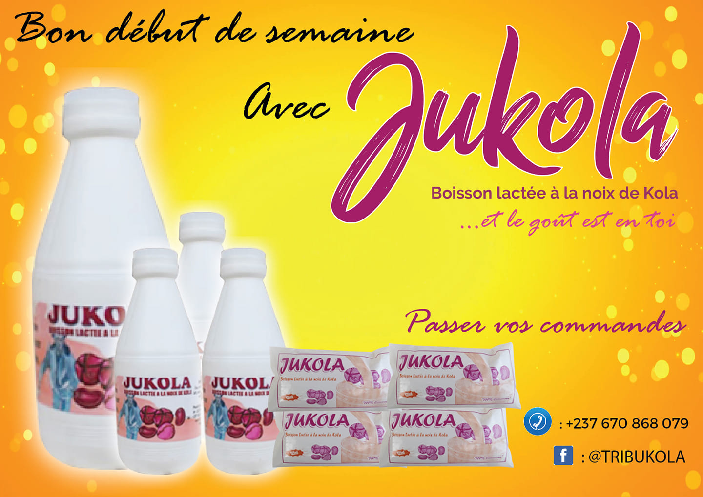Jukola est une boisson à base de noix de Kola, une innovation camerounaise et unique jusqu'à lors Royal. Royal Kola invente le café de noix de kola et actuellement Jukola.