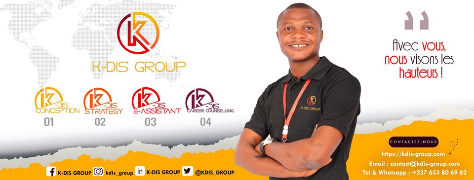 K-Dis Group est un groupe d'entreprises opérant dans les domaines variés. Nous disposons actuellement de 4 entités qui interviennent dans les domaines de la communication, le contrôle de gestion, l'assistanat virtuel et l'accompagnement des jeunes : K-Dis conception, K-Dis strategy, K-Dis E-Assistant, K-Dis career counseling. K-Dis Group est basé à Yaoundé à l’Immeuble Deco Ceramica de Biyem Assi.