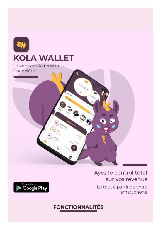 Kola Wallet est une application 100% Camerounaise qui a été conçu pour nous aider à garder un œil et à mieux gérer nos finances personnelles. Kola Wallet a été créé pour nous donner une transparence sur nos dépenses financières. Cette application mobile retrace toutes nos transactions Mobile money et met à notre disposition un carnet de compte. Kola Wallet c'est la solution digitale pour une transparence sur nos dépenses financières.