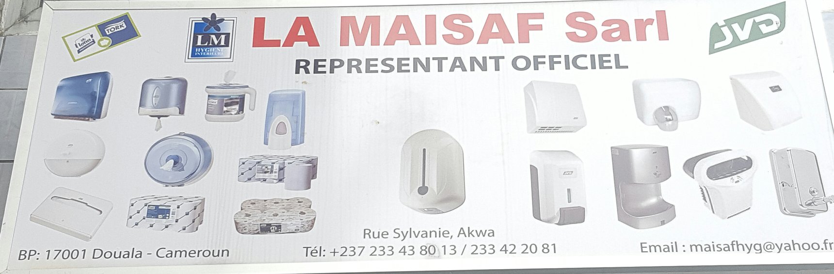 LA MAISAF, crée en 2004 est une entreprise spécialisée dans l’importation et la commercialisation sur le territoire national et dans la sous-région CEMAC des produits d’hygiène pour milieu professionnel, collectivités et des équipements pour l’hôtellerie (HORECA). Représentant Officiel des Grandes Marques Européennes ''TORK'' et ''JVD'', LA MAISAF Sarl vous propose des produits innovants vous permettant de : - Réduire le budget des consommables sanitaires. - Renforcer le niveau d’hygiène et de sécurité en milieu professionnel . - Revaloriser l’image de marque de votre entreprise ; Nos produits sont certifiés ISO et fabriqués aux normes et standards internationaux (Respect des normes en qualité et quantité).