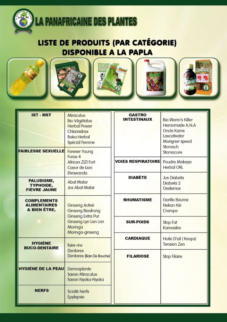 Société de production de remèdes traditionnels de santé et de savon, basée au Carrefour Etoudi en face Fokou, La panafricaine des plantes fournit plus de 500 000 tisanes, jus, savons ou potion à ses clients chaque année