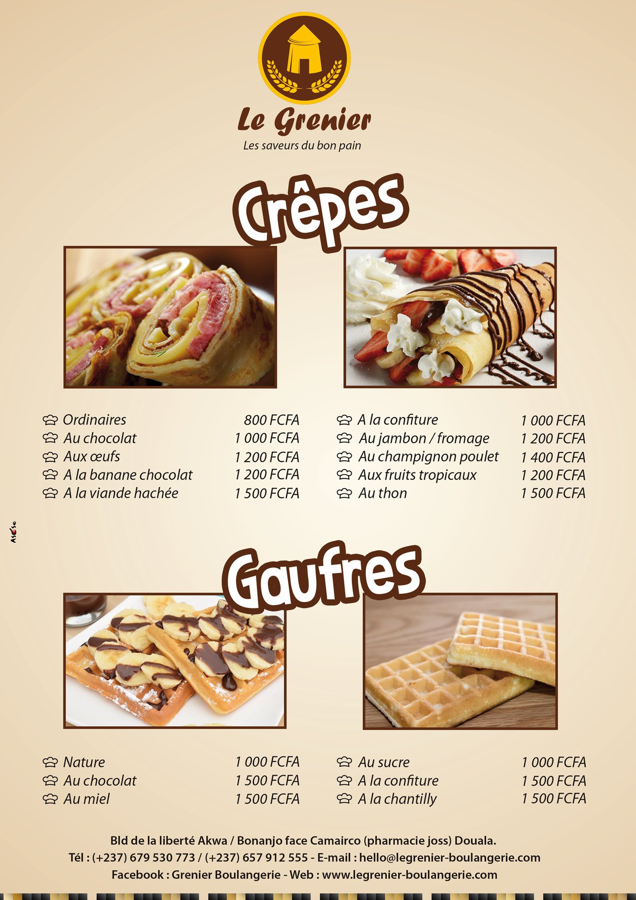 Le Grenier Boulangerie est une boulangerie qui n’existe que depuis le premier trimestre de 2017 mais à la manière dont nous sélectionnons les ingrédients et préparons notre pain, nous y travaillons depuis plusieurs années déjà. Après une longue expérience au service de grandes enseignes, nous avons eu l’ambition de fournir un pain avec des ingrédients locaux soucieux et respectueux de notre environnement. Nous voulons offrir une expérience gustative en rapport avec notre mode de vie, nos traditions et nos habitudes de consommation.