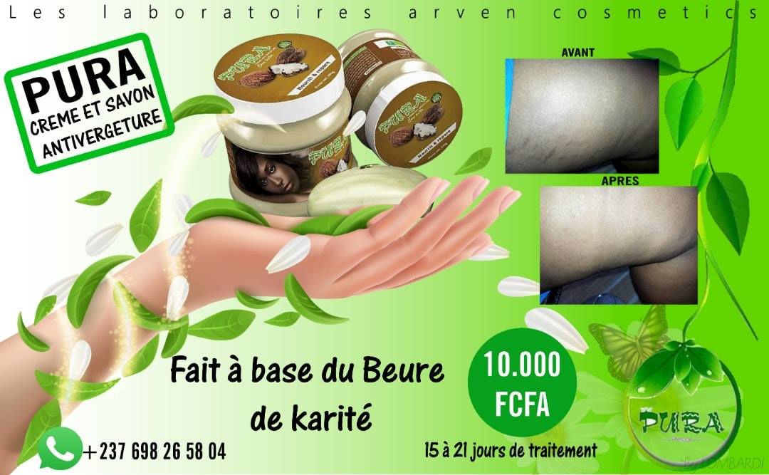 Les Laboratoires Arven Cosmetics est une entreprise spécialisée dans la production et la distribution des produits cosmétiques bio de marque PURA (crème anti-vegetures). Arven Cosmetics est basée à Douala au quartier Bali.