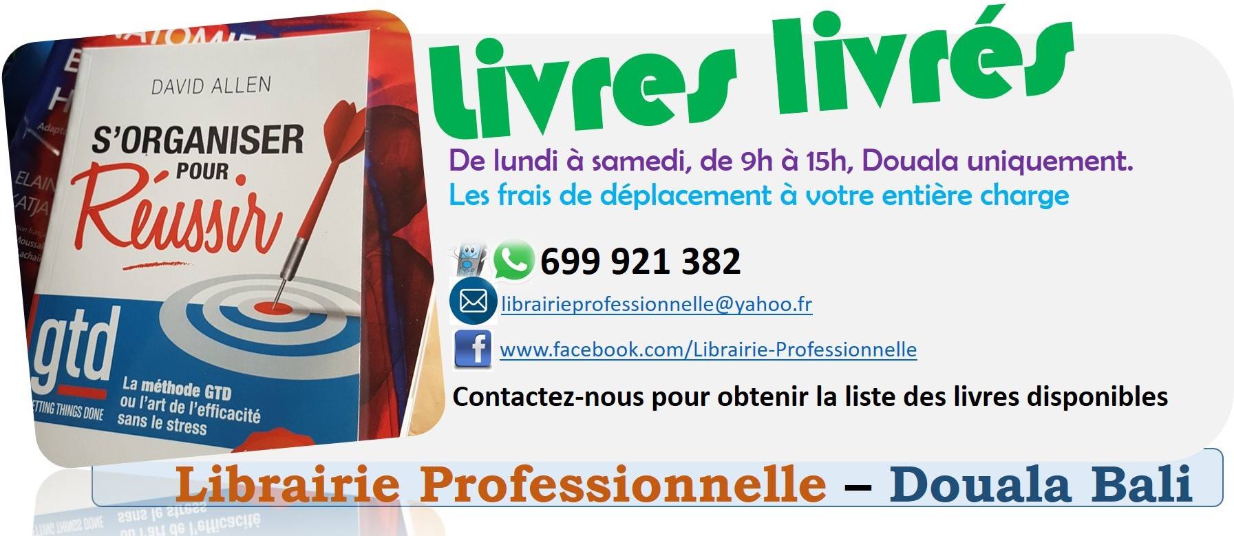 La Librairie Professionnelle (LIPRO) est une grande librairie de la ville de Douala. Vous y trouverez tous les livres, pour l'école, le travail ou la détente, en français ou en anglais. La Librairie Professionnelle vous propose aussi un service de livraison de vos commandes, du lundi au vendredi de 09h à 15h. Les frais de déplacement sont à votre charge.