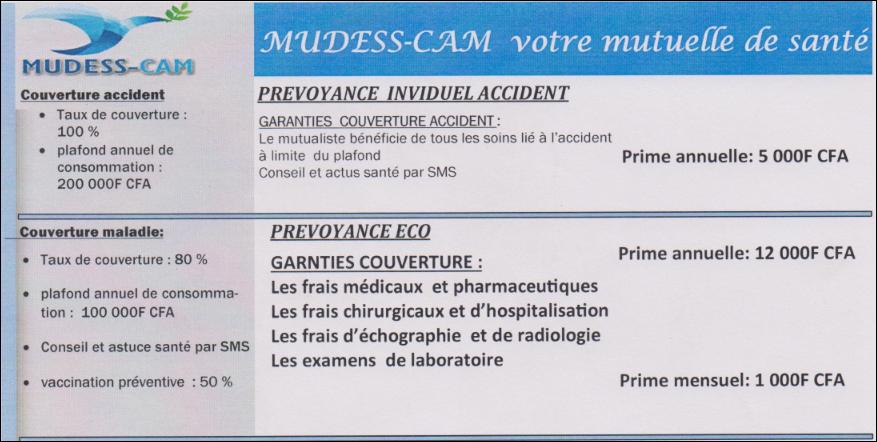 Mudess-Cam est une mutuelle de santé et sociale au Cameroun créée en 2012 permettant de souscrire à une assurance des frais médicaux pour faciliter l'obtention de votre visa en toute sécurité et sérénité. Les pays ouverts à l'assurance sont Allemagne, Autriche, Belgique, Danemark, Espagne, Estonie, Finlande, France, Grèce, Hongrie, Islande, Italie, Lettonie, Lituanie, Luxembourg, Malte, Norvège, Pays-Bas, Pologne, Portugal, République tchèque, Slovénie, Slovaquie Suèdes, Suisse; ainsi que dans les Départements d’Outre-mer et les Collectivités d’Outre- Mer du territoire Français, les principautés d’Andorre et de Monaco, Saint Marin, le Vatican, l'Irlande et le Royaume Uni.