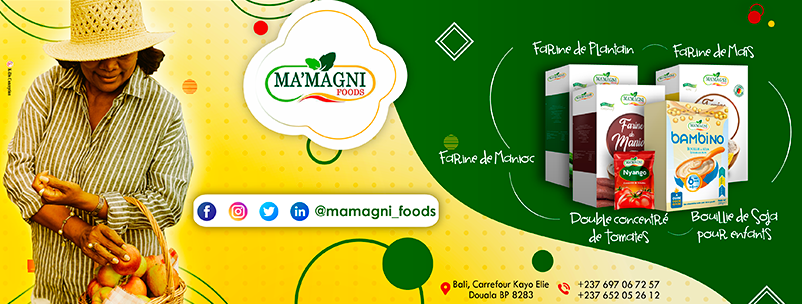 Ma’Magni Foods est une entreprise située à Douala, au Cameroun. Actuellement, représenté sur de nombreux marchés sur différents continents. Ma’Magni Foods est une organisation innovante et motivée dédiée à l’exportation et à la distribution de produits alimentaires emballés dans le monde entier. Ma’Magni Foods entend renverser la tendance avec le concept « mangez sain et naturel » aux consommateurs tout en valorisant le Made in Cameroon.
