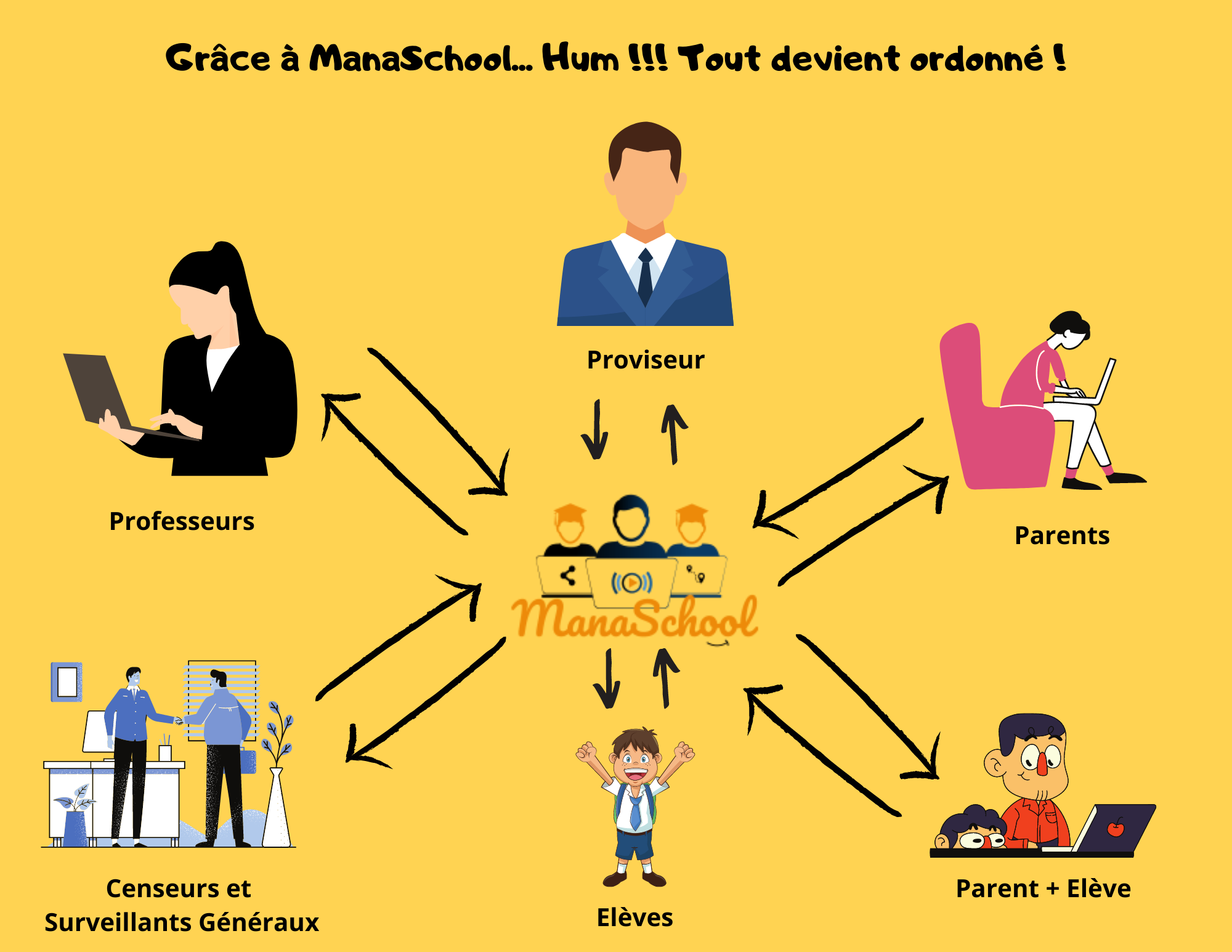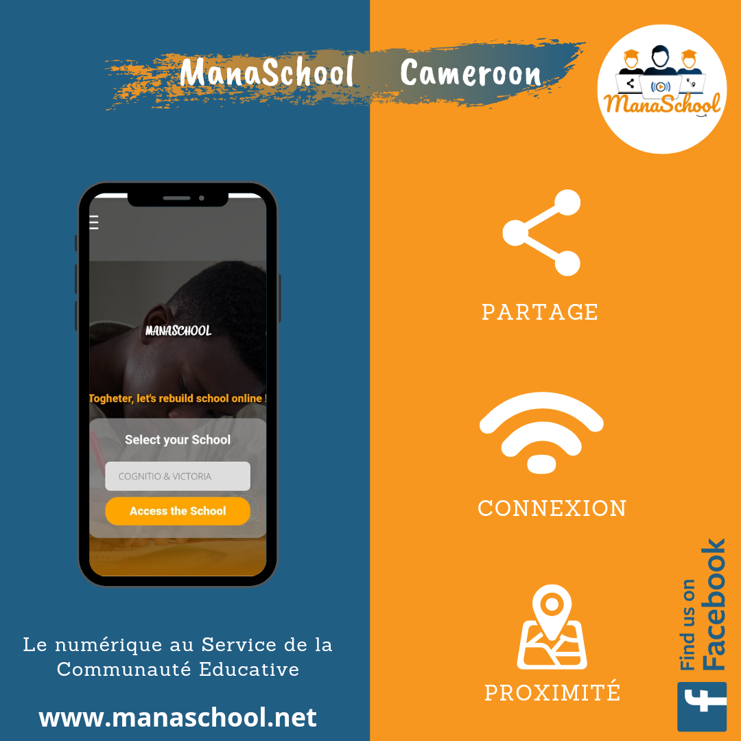 ManaSchool est une application web de gestion d'établissement scolaire développé ManaSchool Cameroon. ManaSchool permet aux élèves et parents d'élèves d'accéder à toutes les informations concernant la scolarité à distance : Gestion des listes des classes, gestion des notes, gestion des informations disciplinaires, impression des bulletins, gestion des communiqués (publication et consultation), gestion des annonces, remplissage des informations à distance, accès à toutes les informations à distance et envoi des requêtes.