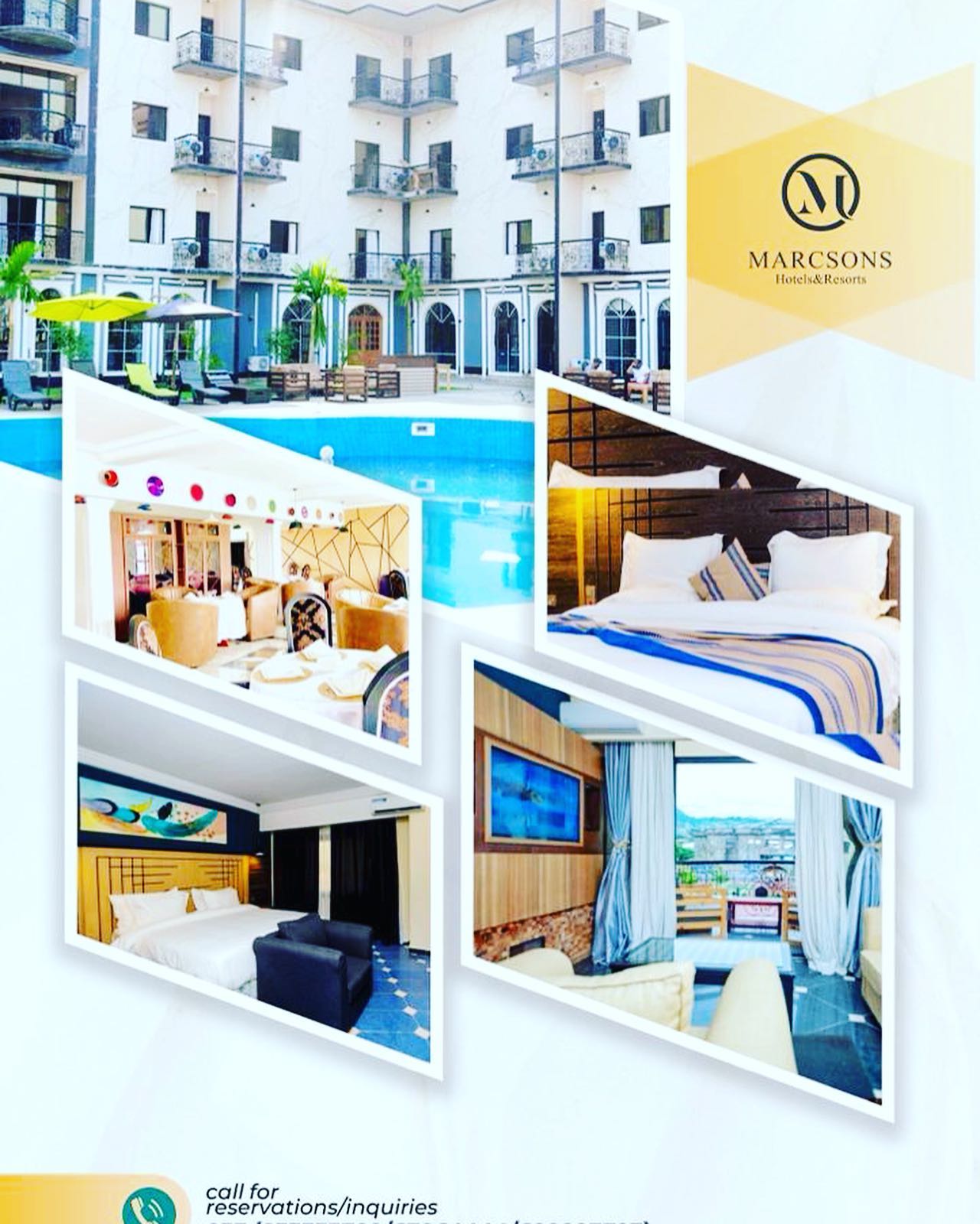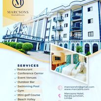 Les Marcsons Hotels and Resorts sont une destination unique où les clients peuvent passer du temps à se détendre ou à travailler. Offrant une fusion parfaite entre le luxe européen et l’hospitalité camerounaise, le Marcsons est un endroit où les clients peuvent se sentir chez eux. Avec 68 chambres et 26 suites réparties sur 4 étages, des possibilités de restauration exquises et de nombreuses activités telles que le tennis sur gazon, le basket-ball, le beach ball et le mini-golf, le Marcsons offre une expérience inoubliable à tous ses visiteurs. Découvrez le meilleur du luxe européen et de l’hospitalité camerounaise au Marcsons Hotels and Resort. Profitez de possibilités de restauration exquises et de nombreuses activités lorsque vous séjournez chez nous. Dînez avec style en dégustant une cuisine internationale contemporaine au Marcson’s Restaurant. Ouvert tous les jours pour le petit-déjeuner, le déjeuner et le dîner, nous proposons un buffet de saveurs locales et internationales qui plaira à tous les membres de votre groupe. De plus, notre restaurant barbecue au bord de la piscine sert de délicieuses grillades toute la journée.