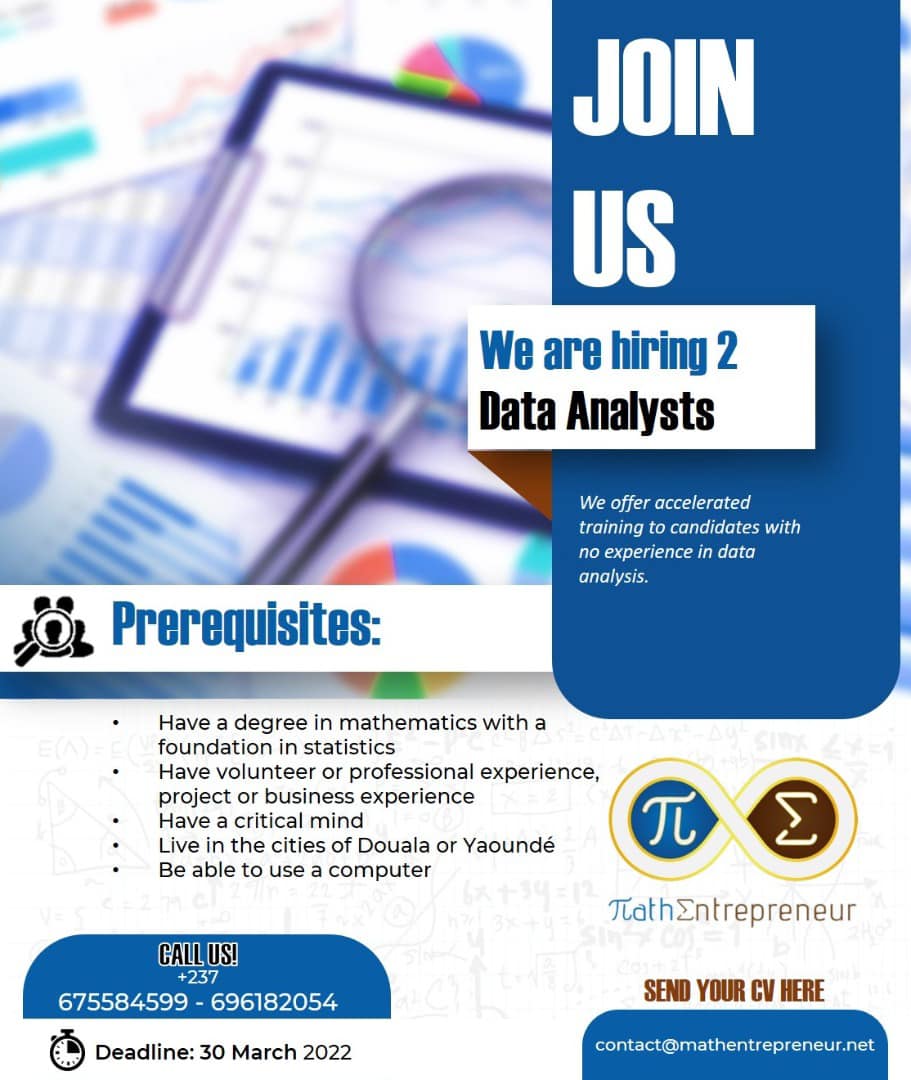 Math Entrepreneur est une organisation opérant dans l'excellence naturelle, habilitée et motivée à transformer le continent africain par la recherche, l'innovation et l'entrepreneuriat dans les domaines de la science, de la technologie, de l'ingénierie et des mathématiques (STEM). L'objectif principal de Math Entrepreneur est d'utiliser des techniques mathématiques pour résoudre les problèmes dans les affaires et la vie quotidienne tout en augmentant la soif des jeunes Africains pour les carrières dans les STEM. Notre équipe donne vie à l'éclat des mathématiques en fournissant des produits et des solutions étonnants aux problèmes des sciences sociales, de l'agriculture, de l'éducation, de l'énergie, de l'environnement et bien plus encore. Nous prenons les problèmes qui nous entourent, les analysons et construisons des solutions avec des composants mathématiques robustes et attrayants, dans l'espoir de stimuler l'intérêt pour les mathématiques et leur potentiel de résolution de problèmes.
