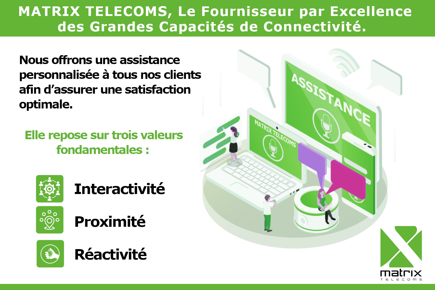 Matrix Telecoms, entreprise du Groupe ICCNET est un opérateur de Réseaux et Télécoms disposant d’une infrastructure de pointe pour tout type de besoins en solutions de télécommunications. Elle met tout en œuvre afin d’offrir des produits et services innovants, diversifiés et des plus performants.