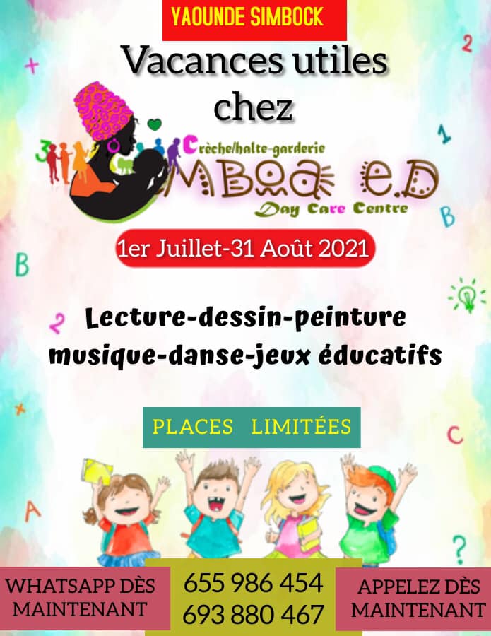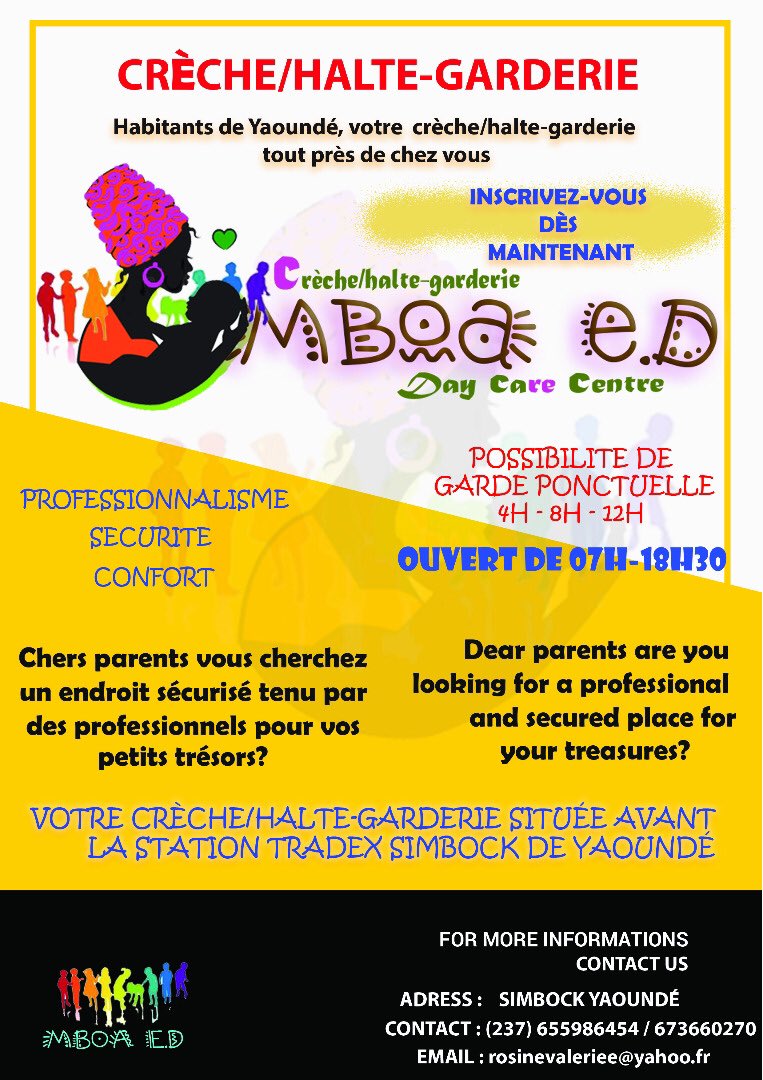 Mboa ED est une garderie pour enfants basée au quartier Simbock à Yaoundé. Elle propose une solution pour soulager les parents en gardant leurs enfants dans un cadre familier adéquat permettant à vos enfants de développer leur créativité.