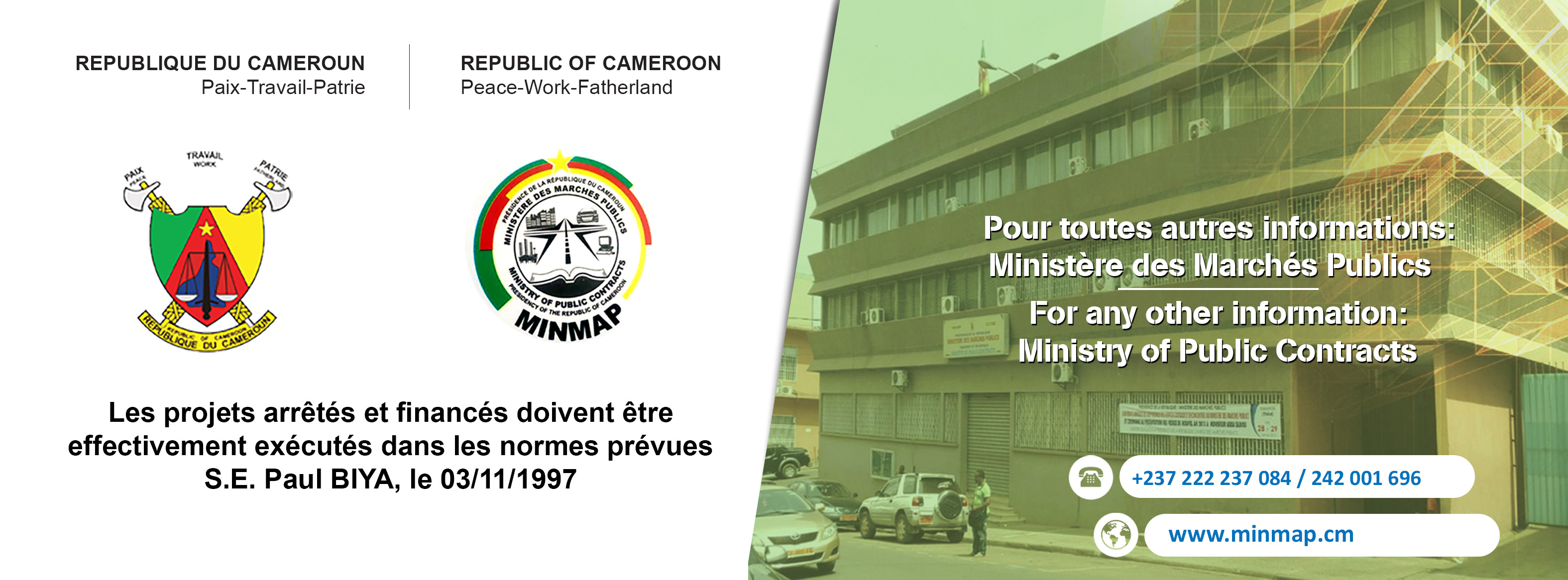 Minitère des Marchés Publics (MINMAP) est le ministère de l'Etat Camerounais responsable de l'organisation, du contrôle extreme, de la passation et exécution des marché publics. Il organise et veille au bon fonctionnement du système et signe des textes relatifs aux marchés publics.