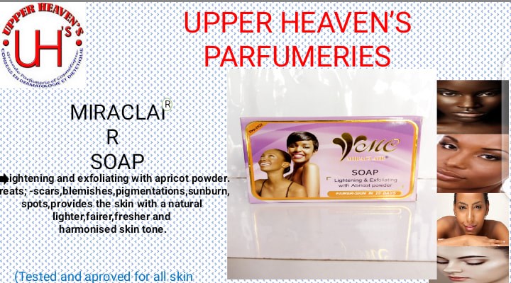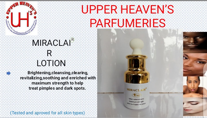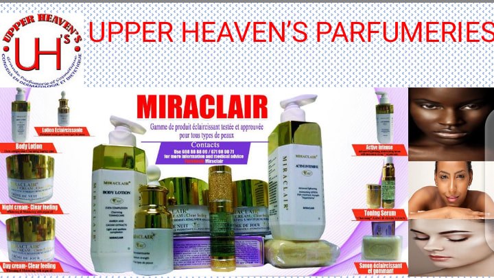 La gamme Miraclair produite par biomédical laboratory est une gamme de produits cosmétiques riche ayant deux lait de toilettes, deux crème une lotion, un sérum et un savon. Biomedical laboratory un laboratoire basé à Londres spécialisé dans le cosmétique et la beauté avec pour représentant au Cameroun la grande parfumerie Upper Heavens avec pour direction générale Mvog-mbi poste de police.
