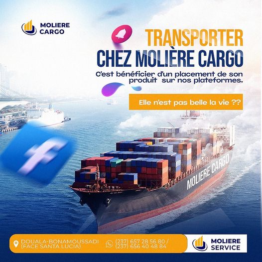 Moliere-Cargo est une entreprise spécialisée dans le transport des marchandises et colis de la Chine pour le Cameroun en seulement quelques jours. Nous nous rendons disponibles pour l'achat de vos produits ou machines industrielles, pour le paiement de vos factures en Chine en dollarss ou en Rmb, pour la vérification de vos marchandises auprès de vos fournisseurs.