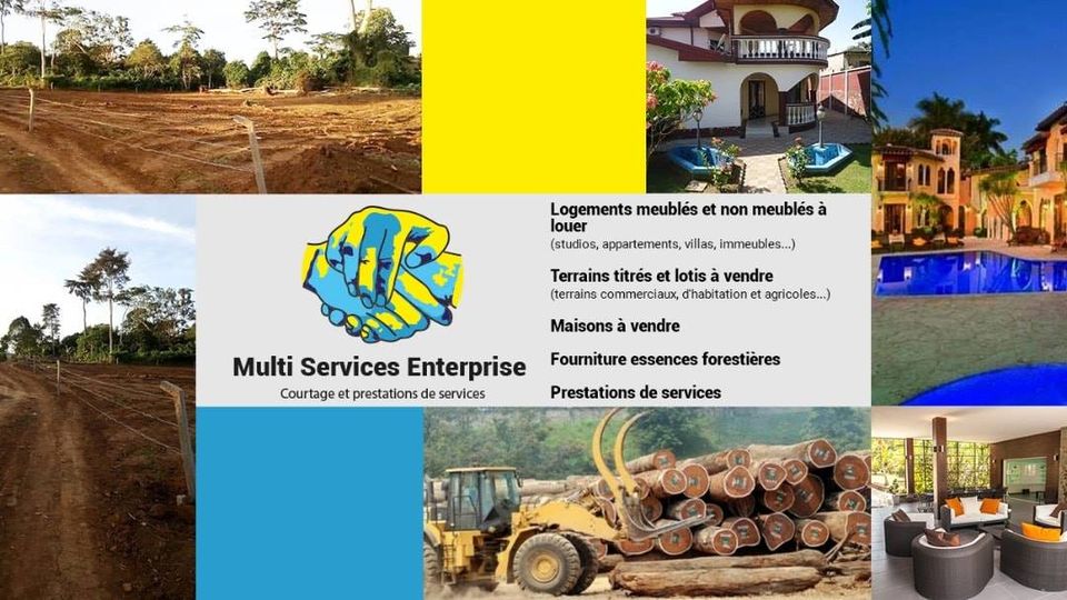 Multi Services Enterprise est une entreprise de courtage et de prestations de services. Multi Services Enterprise basé à Yaoundé vous propose ses services en courtage immobilier, immatriculation, lotissement, prestations locatives, achat d'essences forestières (bois en grumes ou en débités), acquisition immobilière (achat de terrain, achat de maison etc).