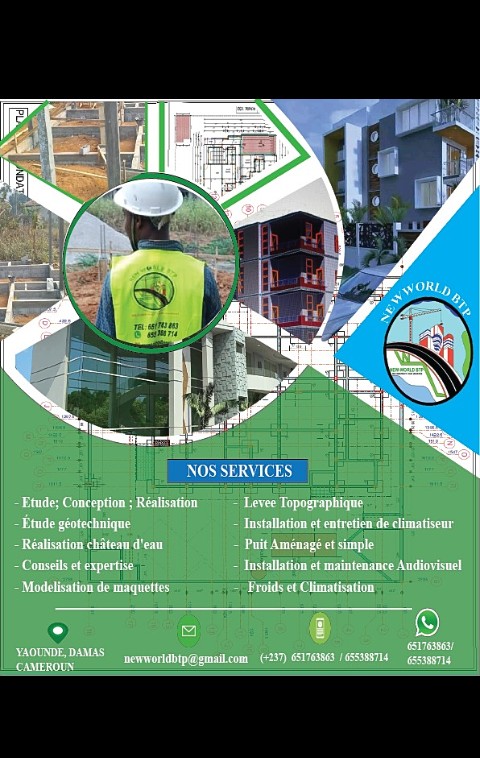 Nous sommes une entreprise d'expert,basée à Yaoundé, Damas. Effectuant dans le BTP, bureau d'études, conception, maquette, création de forage domestique,et industriel, dans le suivi de chantier,froid et climatisation,