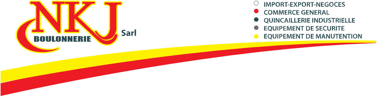 Depuis près d’une décennie, NKJ BOULONNERIE SARL s’est donné pour mission la satisfaction optimale de sa clientèle. Aussi les exigences de qualité, de coûts, de délai de livraison et de disponibilité font l’objet d’une attention particulièrement rigoureuse chez nous. L’ensemble de notre personnel est mobilisé et motivé pour répondre au mieux à chacune de vos sollicitations que vous soyez un client corporate ou individuel. Dans chacun de nos points de vente, nos collaborateurs sont des professionnels qui sont passionnément orientés client pour faire de votre moment d’achat une expérience satisfaisante. NKJ BOULONNERIE importe et commercialise les consommables industriels dans les domaines de la boulonnerie ; les équipements de protection individuelle ; les équipements de manutention ; la tuyauterie industrielle ; la plomberie industrielle et la chaudronnerie.