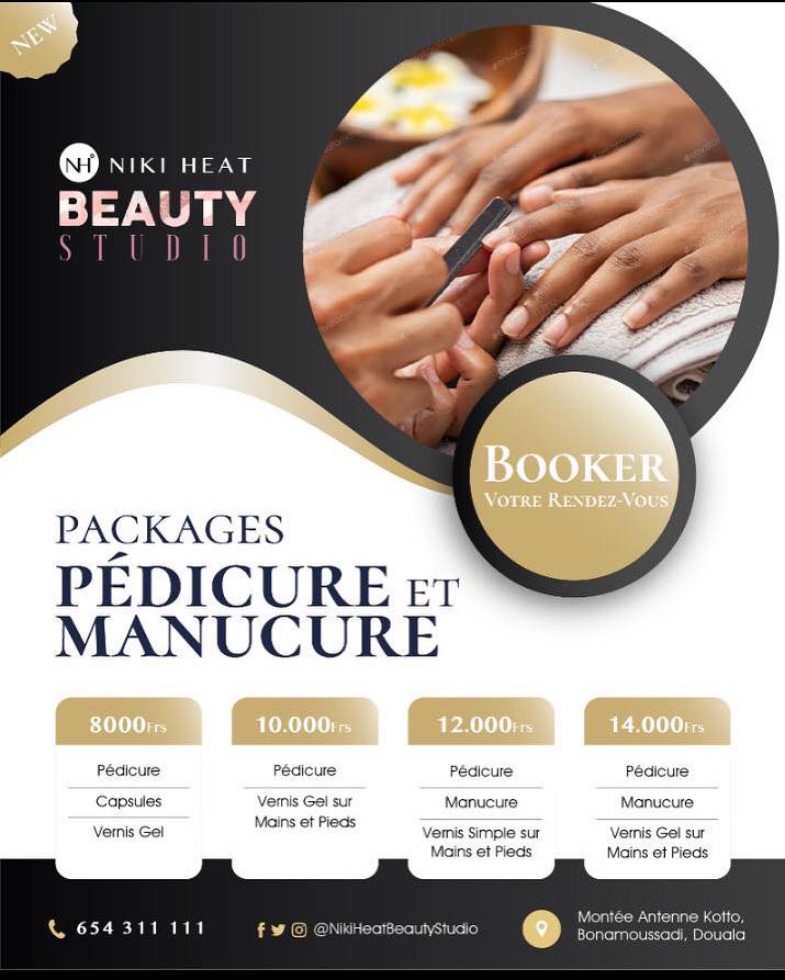 Niki Heat Beauty Studio est un institut de beauté moderne situé à Douala Bonamoussadi. Niki Heat Beauty offre une large gamme de service en make up, coiffure, onglerie, soins de visage, manucure, pédicure, formation en make up, gestion de modèles, événementiel, vente des produits de beauté, spa et photographie. Niki Heat offre également des services à domicile dans les deux villes où elle est basée (Douala et Bamenda). Un studio photo à service complet fonctionne au sein du studio de beauté et propose des portraits et des photos pour les couples et les bébés, des vidéos de mariage et des photographies.