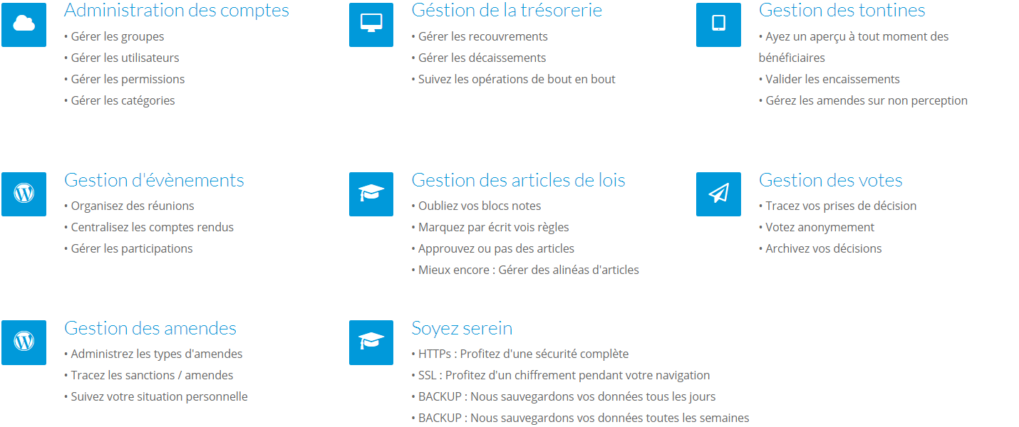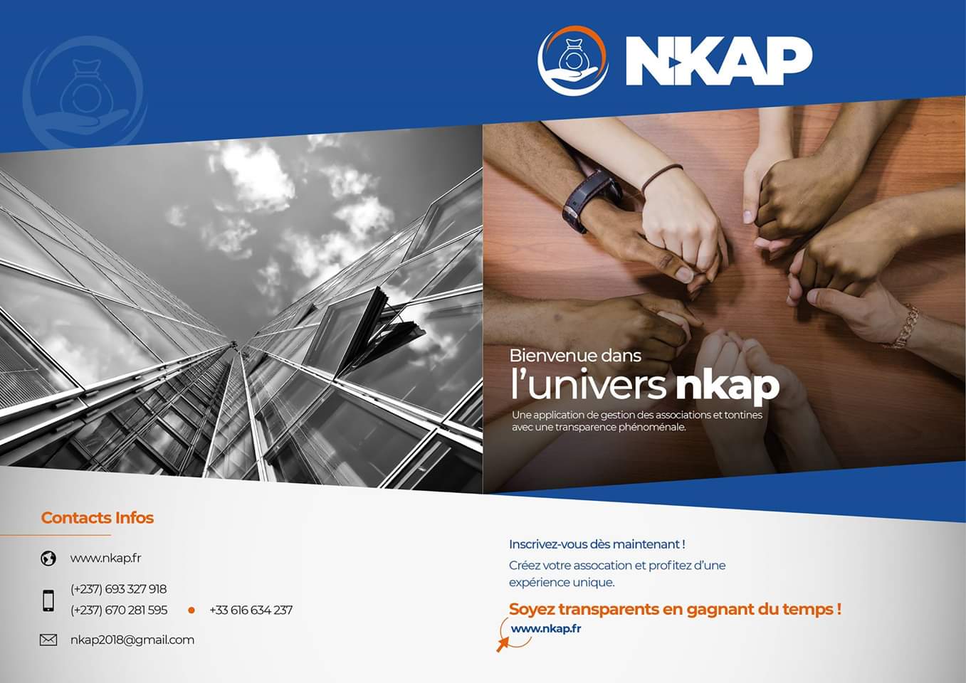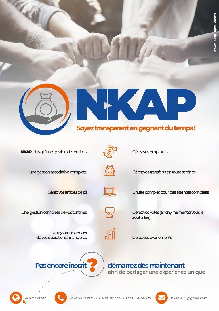 Nkap App est Application web de gestion d'associations et tontines. Nkap App permet entre autres de: L'Administration des comptes, La gestion de la trésorerie, La gestion des emprunts, La gestion des tontines, La gestion d'évènements, La gestion des articles de lois, La gestion des votes, ou encore La gestion des amendes.