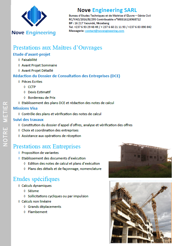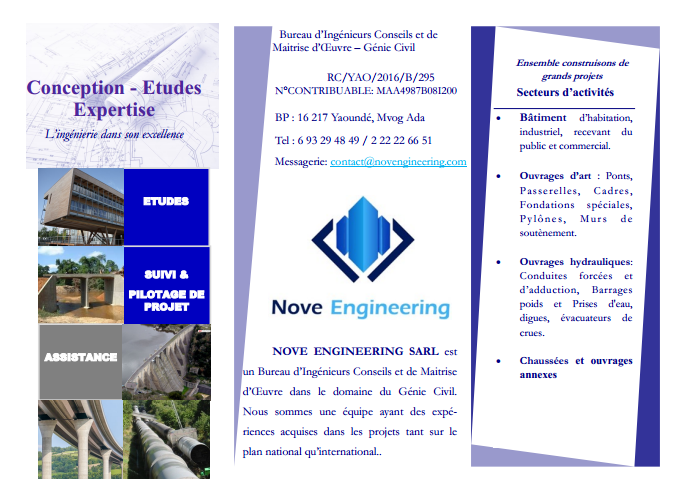 NOVE Engineering est un Bureau d’Ingénieurs Conseils de Génie Civil qui assure toutes les missions de conception technique, de planification, d’organisation et d’exécution.