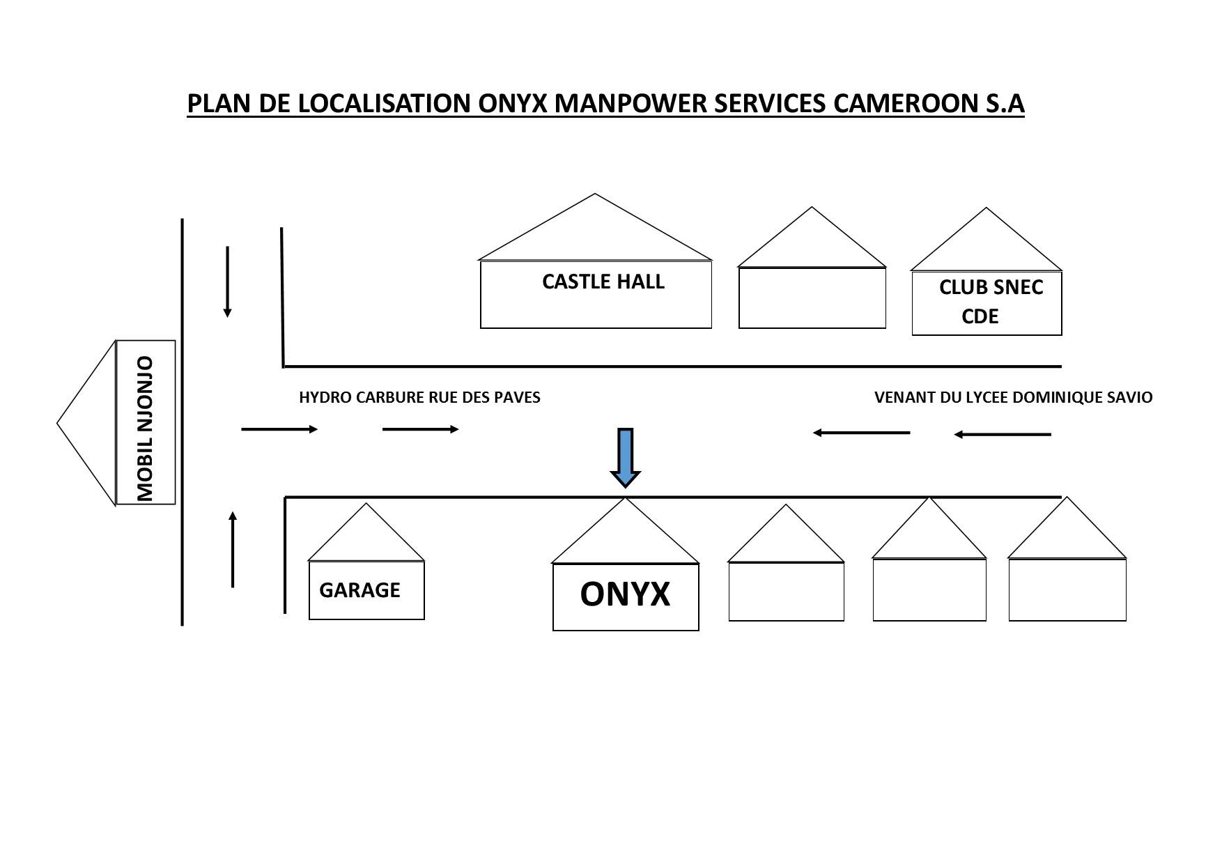 ONYX Manpower Services Cameroon aussi connu sous le nom ONYX Allied Services Cameroon est une entreprise de fourniture fiable de la main d’œuvre temporaire, qualifiée, semi-qualifiée et non qualifiée dans tous les secteurs d’activités au Cameroun et en Afrique. Nonobstant la rude concurrence existante, nous nous positionnons à ce jour comme le principal fournisseur fiable de la main d’œuvre temporaire, qualifiées, semi-qualifiées et non qualifiées dans tous les secteurs d’activités. Très rapidement, la société ONYX s’est spécialisée dans la gestion du personnel des sites miniers et pétroliers qui demande d’autres connaissances telles que : les relations avec les communautés locales, la protection de la nature et de l’environnement, la formation des travailleurs sur les normes QHSE etc… C'est une société qui par son dynamisme et professionnalisme sait à la fois répondre aux besoins, exigences des entreprises et aux attentes des chercheurs d'emplois. ONYX Manpower est basée à Douala au quartier Bonapriso.