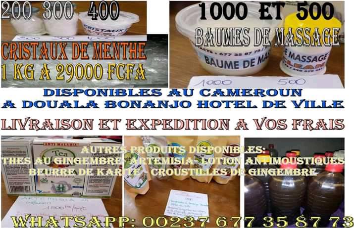 Olys Clean et Santé est une boutique de vente des produits de santé basée à Douala au quartier Bonanjo. Olys Clean et Santé propose les produits suivant : cristaux de menthe, baumes de massage, thés au gingembre, artemisia, croustilles au gingembre, beurre de karité, lotion anti moustique.