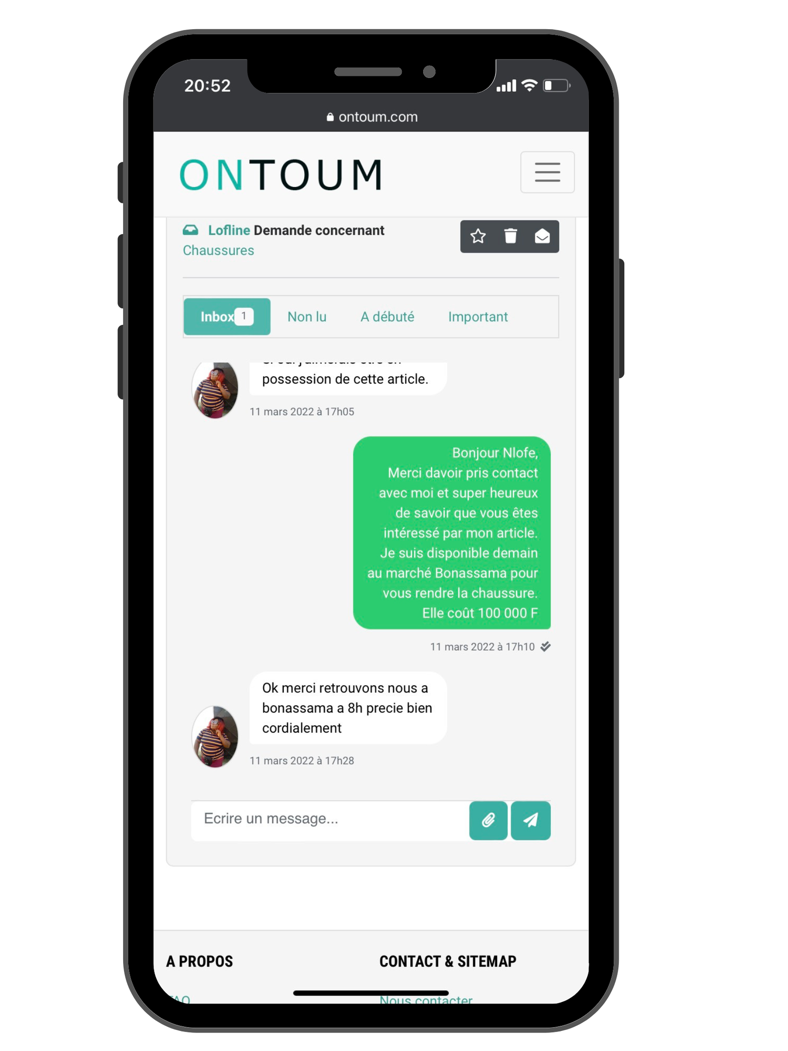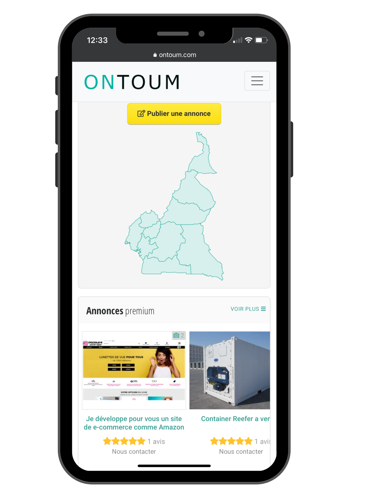 Ontoum est le meilleur site de petites annonces classées gratuites au Cameroun : Immobilier, location maisons, électronique, informatique, automobiles, ...Vendez ou proposez n'emporte quel service que vous voulez sur Ontoum. Ontoum est un intermédiaire entre le vendeur et les acheteurs.