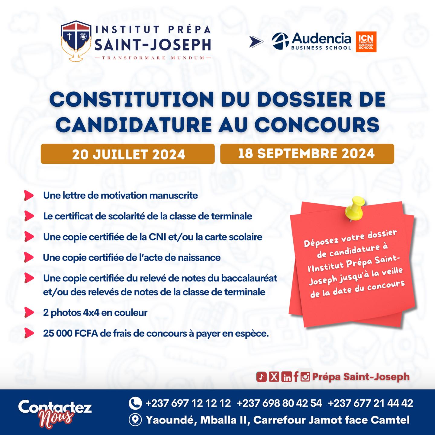 Institut Prépa Saint-Joseph est une institution privée camerounaise offrant des formations de types classes préparatoires. À ce jour Prépa Saint-Joseph propose des prépas en Management dans les spécialités Finance d’Entreprise, Commerce International et Marketing Digital. La formation à Prépa Saint-Joseph se fait selon le modèle 2 ans au Cameroun et 1 an à l'Étranger dans des écoles partenaires (Audencian et ICN Business School).