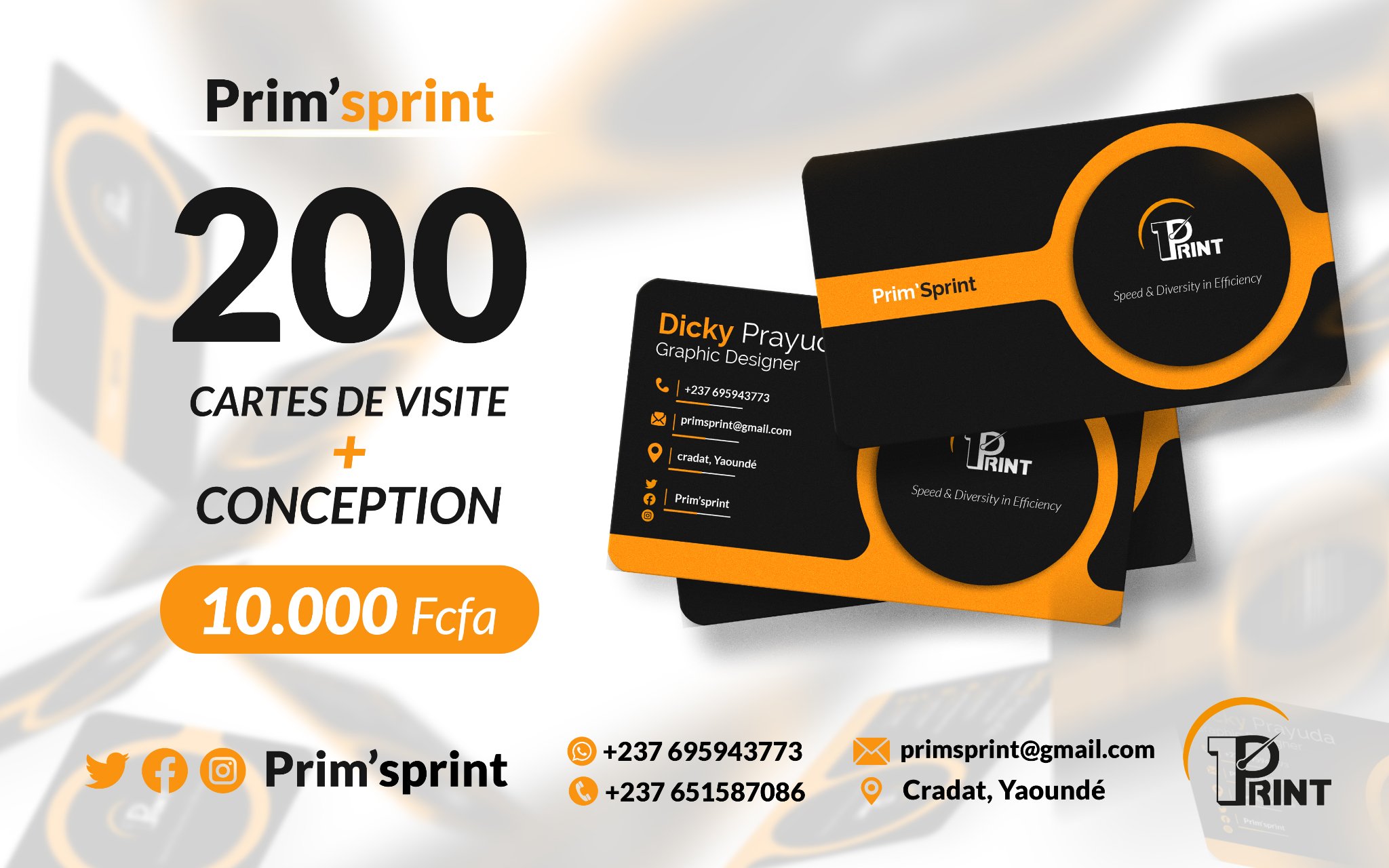 Prim'sprint aide les entreprises et les particuliers à obtenir des cartes de visite de manière rapide et sécurisée sous un délai de 72h quel que soit la ville dans laquelle l'intéressé se trouve. Prim'sprint est situé à Yaoundé au Cradat.