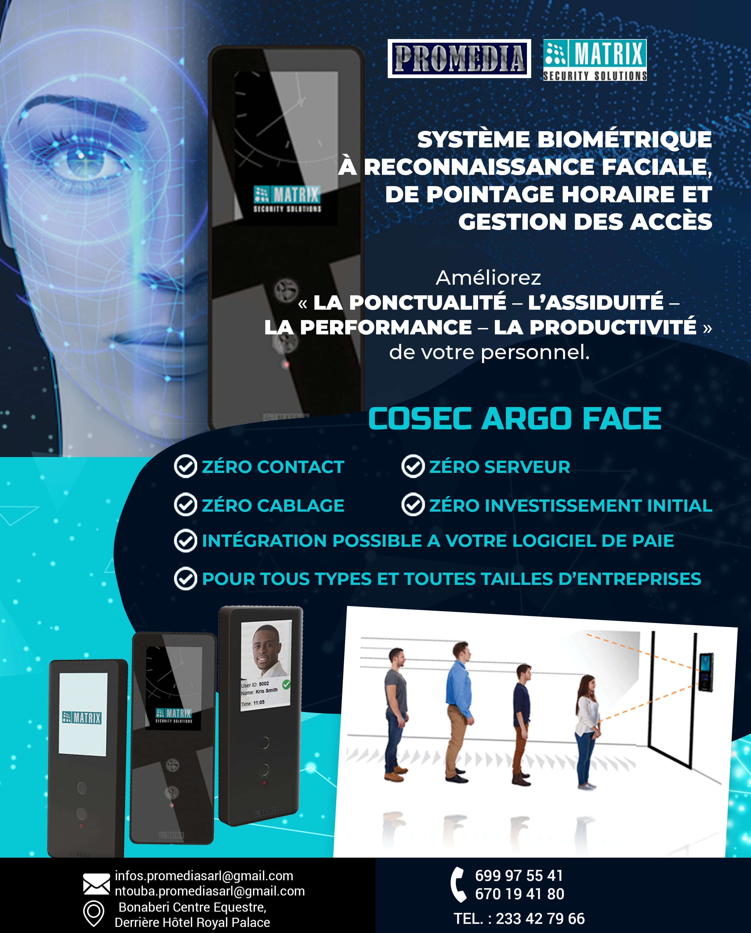 Promedia Sarl est une entreprise proposant des services professionnels divers et notamment des services informatiques. Promedia propose la Conception, Réalisation et Commercialisation de Logiciels Simplifiés de Calcul des Salaires pour PME et TPE. Dans ce secteur, son produit phare est le logiciel de gestion de Paie/Ressources humaines Massert. Par ailleurs, Promedia propose aussi des solutions de contrôles biométriques des heures de présence et de travail du personnel à travers son produit Cosec Argo Face. L'entreprise est située à Douala, au quartier Bonabéri.