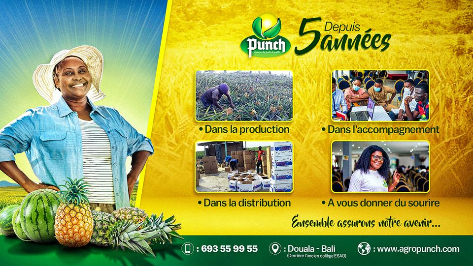 Punch est une entreprise spécialisée dans la production et la distribution des fruits de qualité au Cameroun et à l'extérieur. Nous avons pour objectif d’accroitre la production agricole en créant des plantations sur notre site de production et chez les clients disposant leur propre parcelle de terre. Notre équipe de techniciens expérimentés se charge de la réalisation des différents travaux agricoles. Composée d’une équipe dynamique et des moyens logistiques adéquats. Nous nous chargeons de distribuer des fruits de qualité à nos différents clients (les agro industries, les supers marchés, les détaillants et les consommateurs finaux). Les fruits sont issus de nos différentes plantations et des plantations partenaires. Les fruits sont récoltés et transportés dans des conditions idoines.