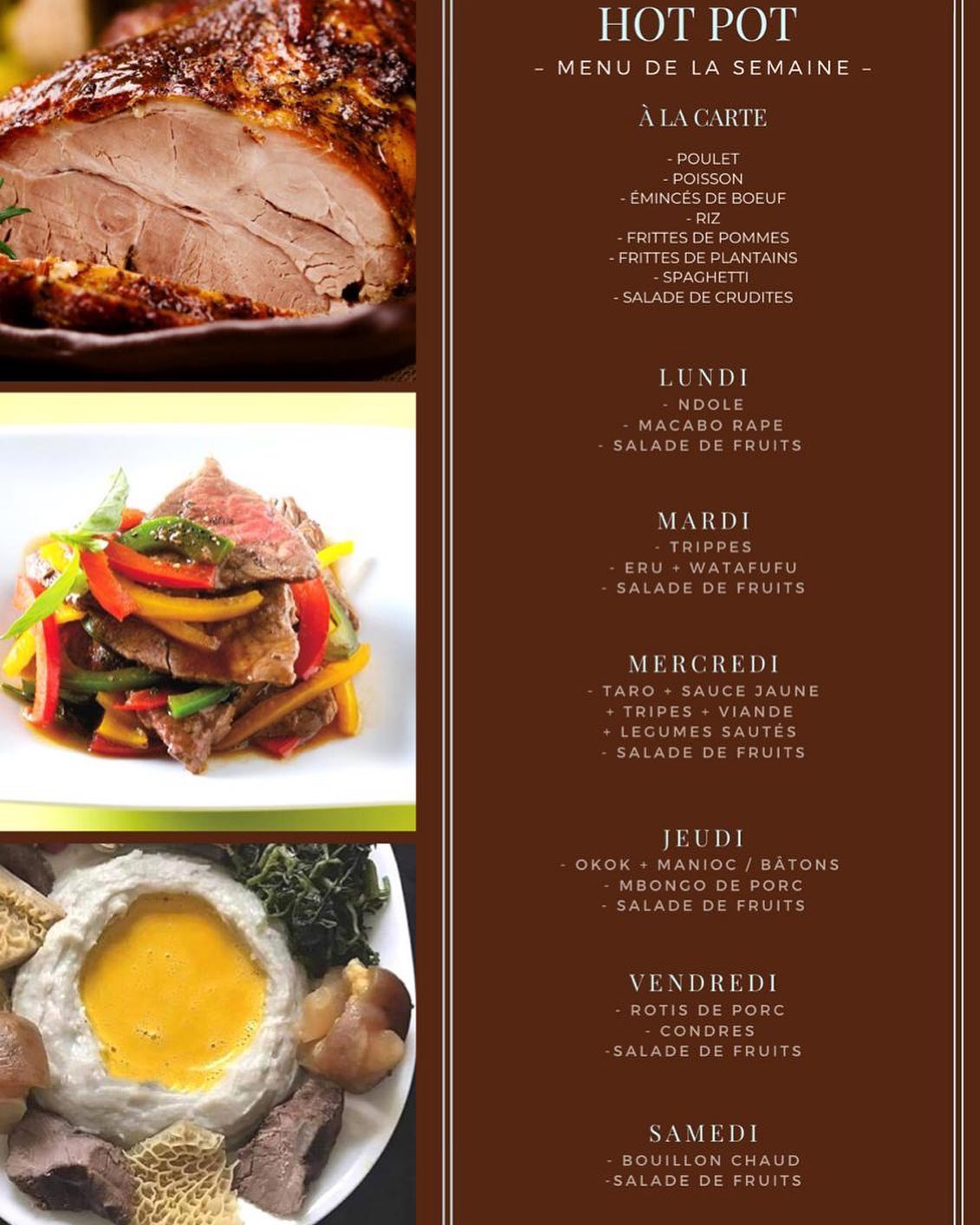 Restaurant Hot Pot est un restaurant constitué d’un espace convivial et vraiment accessible avec un service professionnel dévoué à vous servir. Nous vous proposons des grillades et des plats faits maison. Nous sommes situés à la Camair-co en face du marché Mfoundi à Yaoundé.