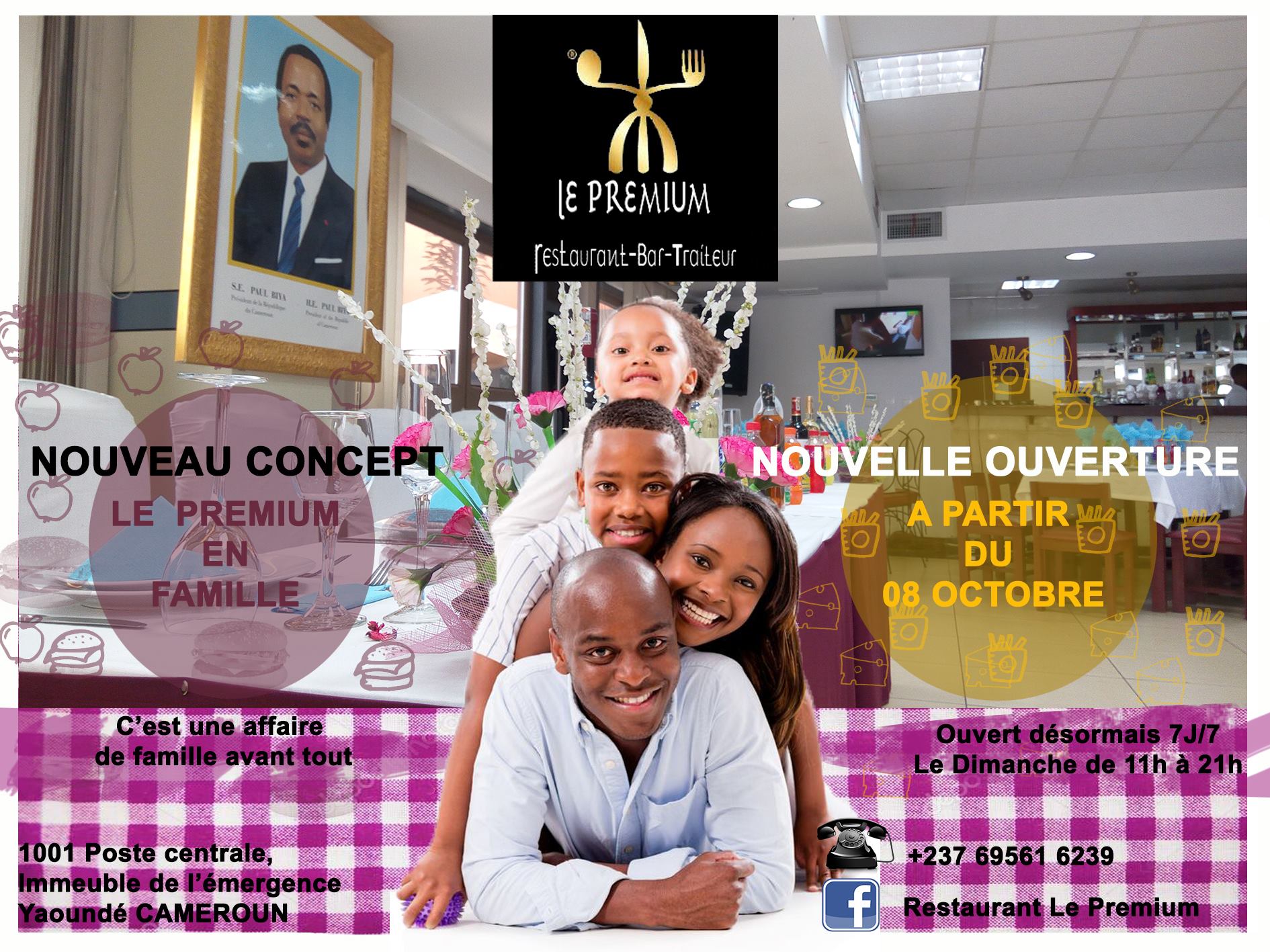 Le Restaurant PREMIUM ou simplement LE PREMIUM pour les intimes, est un magnifique restaurant à l’ambiance élégante dont la décoration, vous immerge dans un style exceptionnel. LE PREMIUM est situé en plein coeur de la cité capitale Yaoundé, à l’immeuble ministériel N°1 appelé Immeuble de l'émergence.