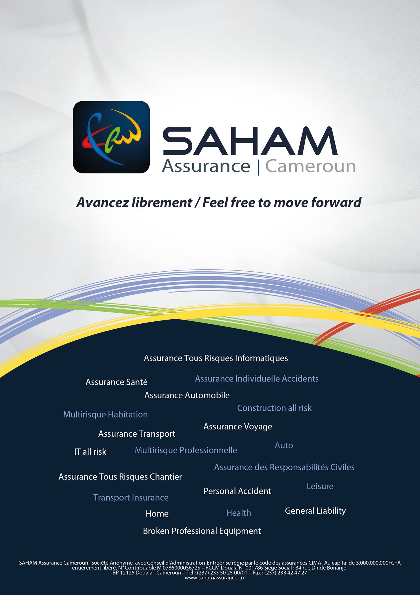 Marque née en 2014, Saham Assurance est leader en assurance à travers une présence dans plus de 20 pays en Afrique et au Moyen-Orient. Saham Assurance vous offre un accompagnement sans faille. Plus qu’une assurance, nous vous offrons une aide, une écoute et des conseils. Cette présence large et multiculturelle est l’aboutissement d’une politique d’acquisitions ciblées par le Groupe SAHAM de plusieurs compagnies d’assurance leader en Afrique et au Moyen-Orient. Saham Assurance est représenté dans les villes de DoualaYaoundéBamenda, Bafoussam et Bertoua.