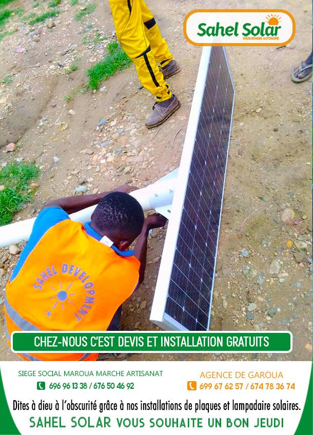 Sahel Solar est une société de distribution et installation des équipements solaires. Sahel Solar est à votre disposition pour vos besoins en énergie solaire avec un an de garantie, devis et installation gratuits. Nous sommes basés dans les villes de Garoua et Ebolowa avec notre siège social à Maroua.