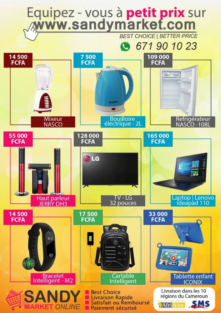 Sandy Market est une boutique en ligne basée au Cameroun, qui veut devenir une marque nationale et rivaliser favorablement avec les principales marques de l'industrie. Nous nous assurerons donc de mettre en place la bonne structure et les processus qui nous permettront de construire l'entreprise de notre rêver. Grâce à une équipe de passionnés et constamment à la recherche des innovations et des tendances de consommation, Sandy Market a démocratisé l’accès à de nombreux produits innovants. Notre vision est de mettre à la disposition de nos clients des produits de qualité au meilleur prix, d’où notre slogan : Sandy Market "Best choice, Better price".